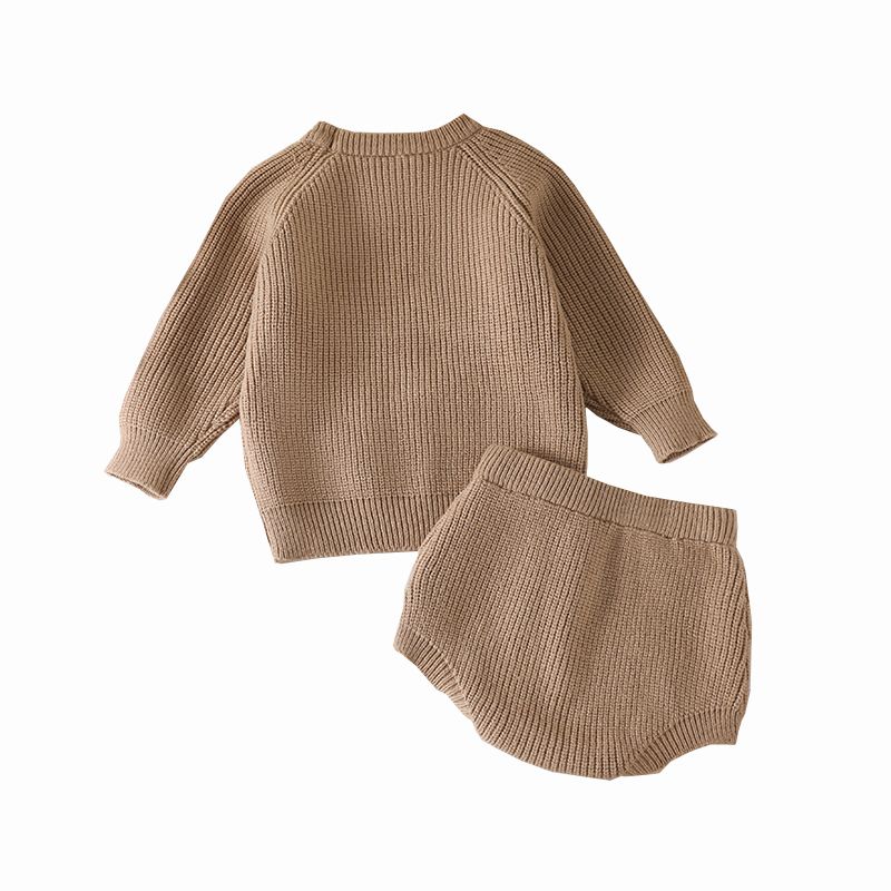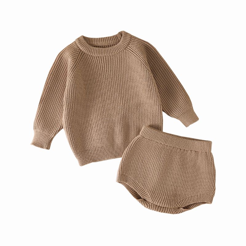 Children's Solid Knit Sweater Suit produced by professional manufacturers is a children's clothing with safe materials, environmental friendliness and comfortable fabrics.